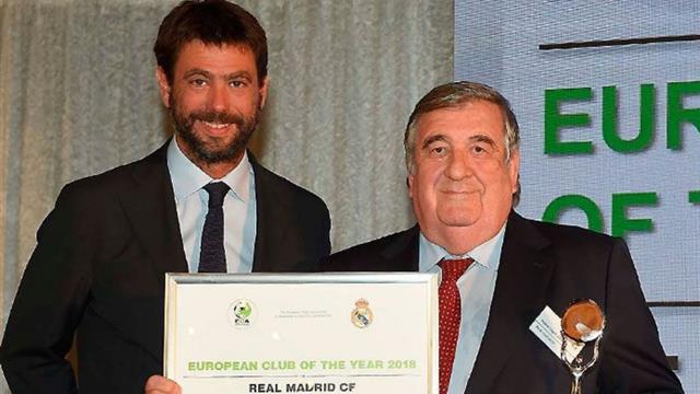حصل نادي ريال مدريد الإسباني على لقب أفضل ناد أوروبي للعام الثالث على التوالي من خلال أصوات أعضاء الاتحاد الأوروبي للأندية في عام 2018.
