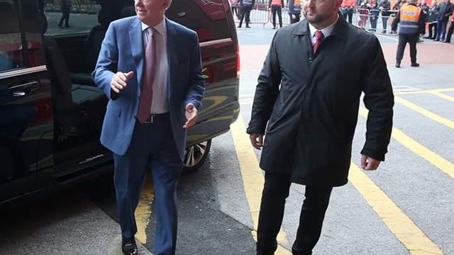 يتواجد مدرب فريق مانشستر يونايتد السابق "السير أليكس فيرجسون" في ملعب الأولد ترافورد في الوقت الحالي.
