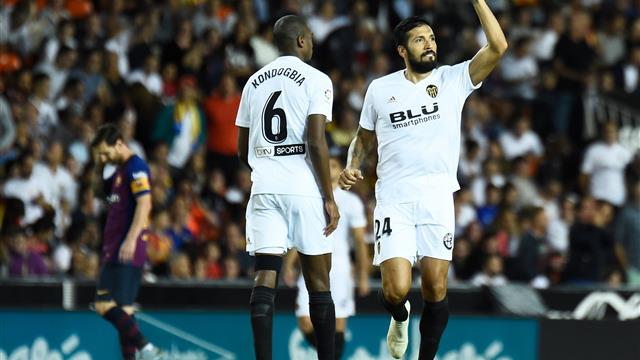 وافتتح الخفافيش المباراة مبكراً بهدف عن طريق المدافع الأرجنتيني "إيزيكيل جاراي" في الدقيقة الثانية بعد خطأ فادح من "جيرارد بيكيه" بعد ركلة ركنية نفذها "دانيل باريخو"، ليتابعها مدافع فالنسيا داخل الشباك الكتالونية.