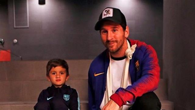 ولم يشارك "ميسي" في المباراة بسبب الإصابة التي تعرض لها في ذراعه، ولكنه حرص على التواجد في "الكامب نو"، ويرافقه نجله "تياجو".