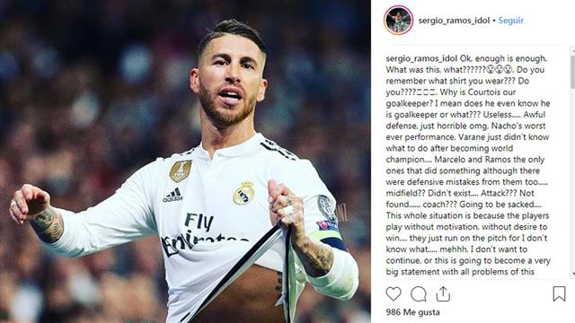 أثار "سيرجيو راموس" مدافع نادي ريال مدريد أزمة جديدة داخل الفريق بسبب حسابه الرسمي على موقع التواصل الاجتماعي "إنستجرام".