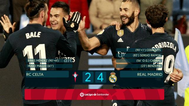 فاز فريق ريال مدريد على مضيفه فريق سيلتا فيجو بأربعة أهداف لهدفين، في المباراة التي جمعت بين الفريقين مساء اليوم على ملعب "بالايدوس"، ضمن فعاليات الجولة الثانية عشر من الدوري الإسباني.