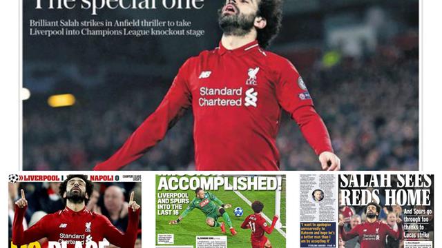 تغنت الصحافة الإنجليزية الصادرة صباح اليوم الأربعاء بالفرعون المصري "محمد صلاح" بعد تألقه بالأمس في مباراة ناديه ليفربول أمام نابولي في الجولة السادسة والأخيرة من دور المجموعات لبطولة دوري أبطال أوروبا.