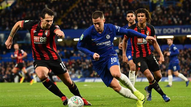 قاد النجم "إدين هازارد" فريق تشيلسي للتأهل إلى نصف نهائي كأس رابطة الأندية الإنجليزية، مساء اليوم، على حساب فريق بورنموث بعد الفوز بهدف دون رد في مباراة ربع النهائي.