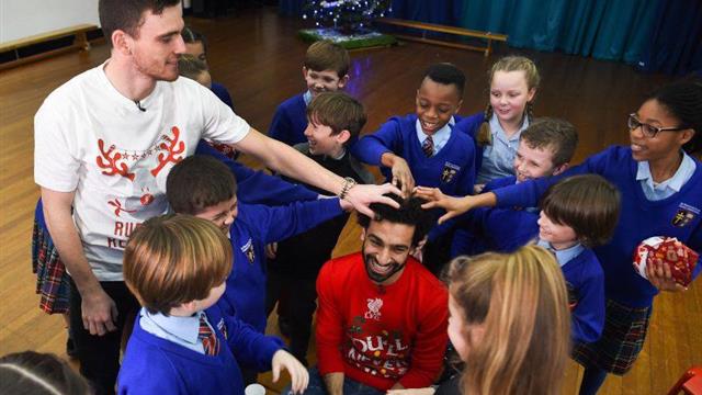 شارك "محمد صلاح" في احتفالات ناديه ليفربول بأعياد الميلاد مع أطفال المدينة الإنجليزية بالتعاون مع زميليه "أندرو روبرتسون" و"شيردان شاكيري".