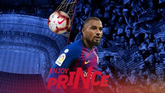 وكُتب في مقطع الفيديو المنشور: "لدينا أخبار جيدة، لاعب جديد قادم، أهلًا بكيفين بواتينج، استمتع بكرة القدم، استمتع برشلونة".