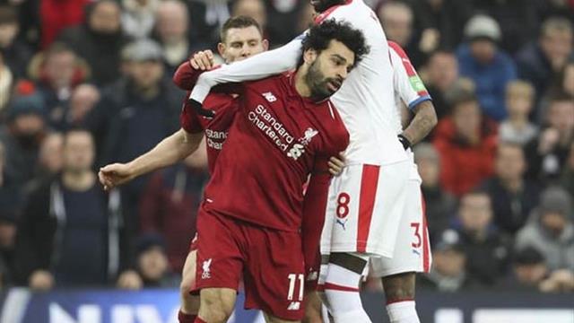 وسقط "مومو" داخل منطقة الجزاء ولكن الحكم لم يحتسب شيئًا، في كرة مشتركة مع "مامادو ساخو" مدافع بالاس، ودخل الثنائي في مشادة، بعدما تعمد "صلاح" التمثيل للحصول على ركلة جزاء.