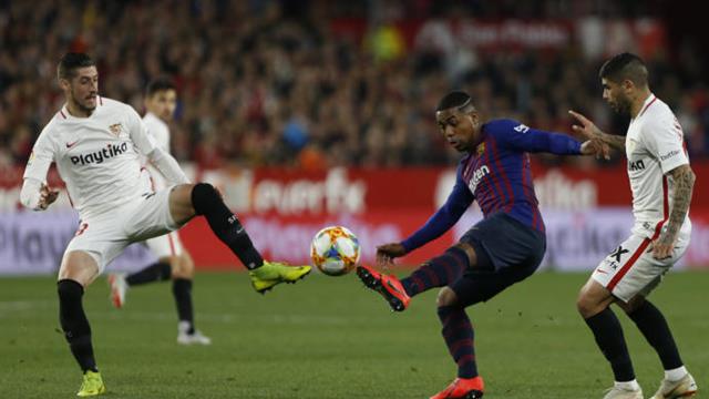 ووضع النادي الأندلسي قدمًا في دور نصف النهائي، بعدما فاز على النادي الكتالوني بهدفين نظيفين، في المباراة التي بين الفريقين على ملعب "رامون سانشيز بيزخوان"، مساء الأربعاء، بذهاب كأس الملك.