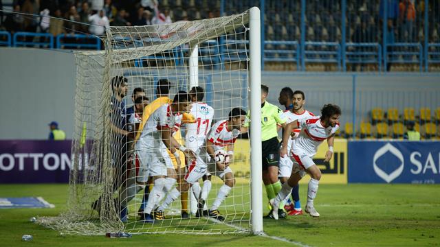 د 42: اشتباك بين لاعبي الزمالك وحارس مرمى بيراميدز بعد تسجيل الهدف.