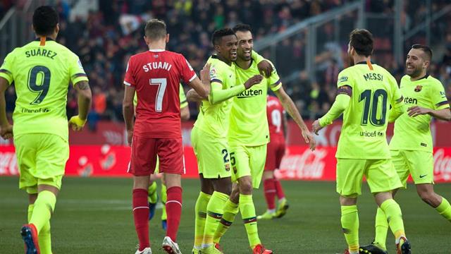 وحسم برشلونة ديربي كتالونيا بهدفين في شباك جيرونا، في المباراة التي جمعت بين الفريقين مساء اليوم على ملعب "مونتيلفي"، ضمن لقاءات الجولة الواحدة والعشرين من الدوري الإسباني.
