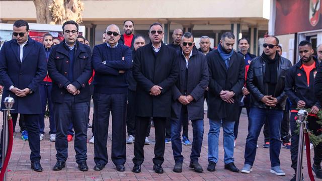 وقام وفد من النادي يتقدمهم الكابتن الخطيب رئيس النادي وبرفقته مجلس الإدارة، والعميد محمد مرجان المدير التنفيذي، ورءوف عبدالقادر مدير النشاط الرياضي، بالإضافة إلى مارتن لاسارتي المدير الفني للفريق الأول لكرة القدم، وسيد عبدالحفيظ مدير الكرة، وحسام عاشور كابتن الفريق هذا إلى جانب الأجهزة الفنية وكباتن الفرق الرياضية في كل الألعاب، بوضع أكليل من الزهور على النصب التذكاري لأبناء الأهلي وقراءة الفاتحة ترحمًا على أرواحهم.