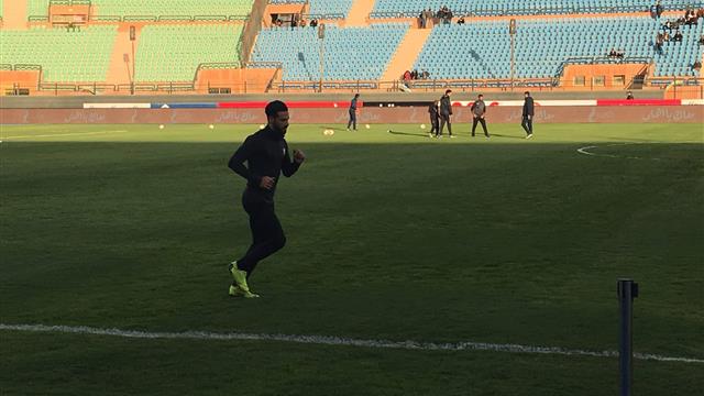 ويؤدي محارب تدريبات تأهيلية بالجري حول الملعب قبل انطلاق المباراة المرتقبة.