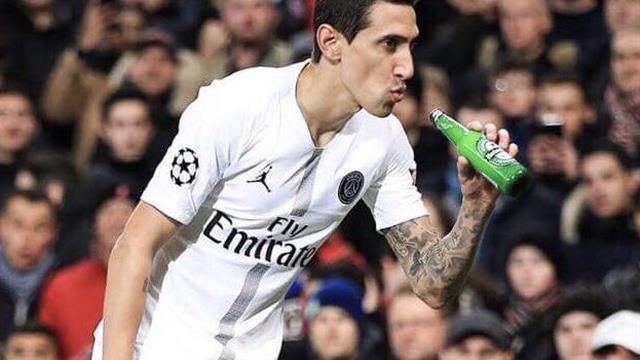 وأثناء اللقاء، ألقت جماهير مانشستر يونايتد، زجاجة جعة على دي ماريا، وتوجه لها اللاعب وأمسك بها، ثم أفرغ محتوياتها وألقاها واستأنف اللعب.