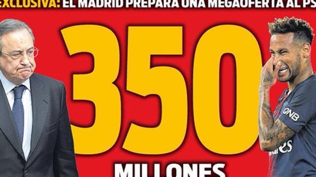 وأشارت الصحيفة إلى أنّ "بيريز" مُستعد لدفع 350 مليون يورو للنادي الباريسي، من أجل التعاقد مع "نيمار".