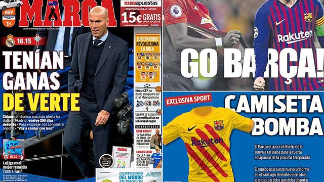 ركزت الصحف الإسبانية، الصادرة صباح اليوم 16 مارس، على الظهور الأول للفرنسي "زين الدين زيدان" المدير الفني لنادي ريال مدريد، بعد عودته للوس بلانكوس مرة أخرى.