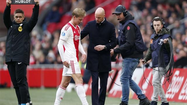 تعرض "فرينكي دي يونج" لاعب وسط نادي أياكس أمستردام لإصابة قوية خلال الشوط الأول من مباراة فريقه الجارية حاليًا في بطولة الدوري الهولندي.
