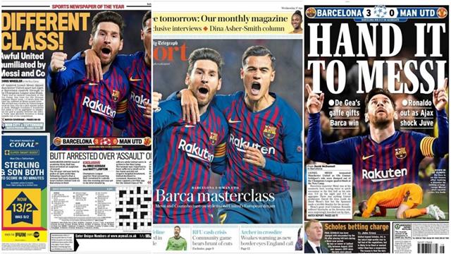 وتابعت الصحافة العالمية سيطرة برشلونة تفوقه الدائم على منافسه مانشستر يونايتد من خلال العناوين التالية: