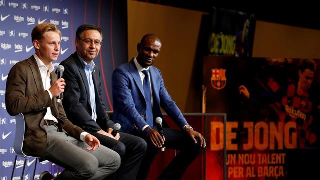 وقدّم برشلونة لاعبه دي يونج، في مؤتمر صحفي، وتواجد به جوزيب ماريا بارتوميو، رئيس البارسا.