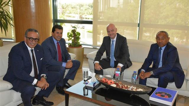صور | رئيس فيفا يجتمع مع الجنايني ووزير الرياضة بحضور الخطيب وأحمد أحمد في القاهرة