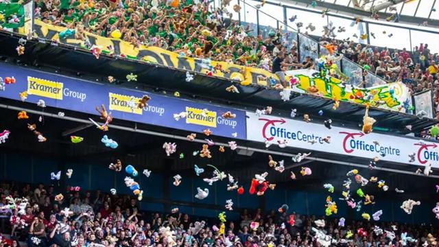 وقامت الجماهير بألقاء حلوى وألعاب على المدرج أسفلهم، والمخصص لأطفال مستشفى روتردام صوفيا.
