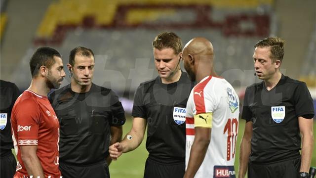 ونشبت مشادة كلامية بين قائد الزمالك وأحمد فتحي الظهير الأيمن للأهلي بسبب مواصلة الأول للعب.