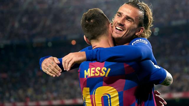 هدف المباراة الأول سجله الفرنسي أنطوان جريزمان برأسية بعد ركنية من ليونيل ميسي وصلت له، ليسجل في شباك الضيوف بالدقيقة السادسة من الشوط الأول.