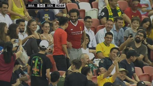 في الدقيقة 82 من عمر المباراة التي انتهت بالتعادل الإيجابي 1/1، ظهر مشجع بمدرجات ملعب سنغافورة يشبه للدولي المصري محمد صلاح بشكل كبير، وكان يرتدي قميص ليفربول. "طالع تقرير المباراة"