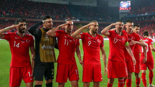 وفاز المنتخب التركي على نظيره الألباني بهدف في الدقيقة 90 لجنيك توسن، واحتفل اللاعبون بتحية عسكرية، على الأرجح في إشارة ودعم للجيش التركي، الذي يقوم بهجوم في سوريا في هذه الأيام.