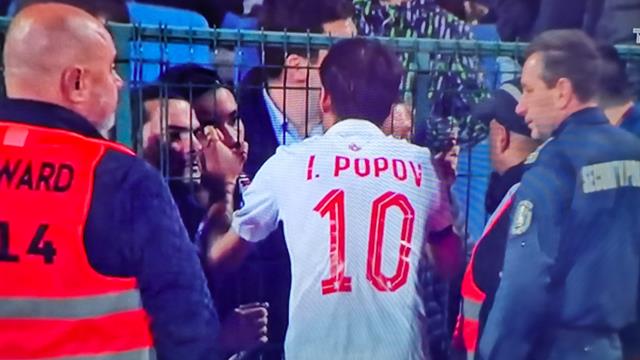 وذكرت صحيفة "ميرور" الإنجليزية أنه بمجرد انتهاء أحداث الشوط الأول توجه قائد منتخب بلغاريا إيفيلين بوبوف إلى جماهيره حيث طالبهم بضرورة إيقاف الهتافات المسيئة.