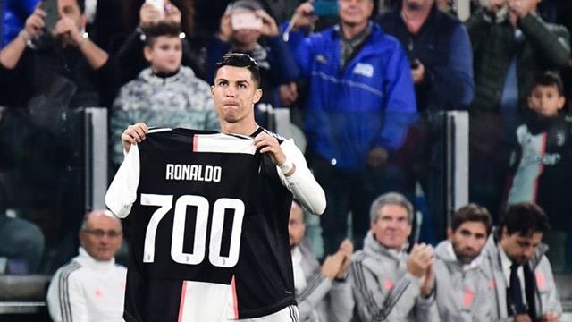 ومنح إنيللي قميصًا لرونالدو يحمل الرقم 700، بعدما سجل البرتغالي 700 هدف في مسيرته الكروية.