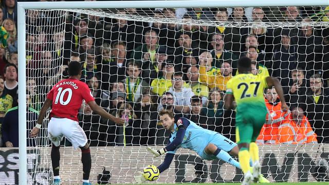 حارس نورويتش سيتي يتصدى لركلتي جزاء أمام مانشستر يونايتد
