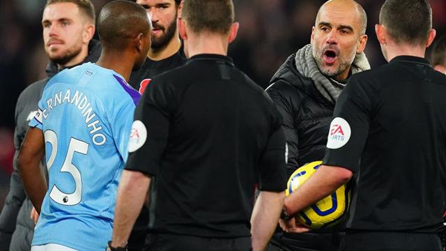 بيب جوارديولا ظهر أثناء المباراة يعترض على التحكيم بشدة من خلال ذهابه لحكم الراية مشيرًا له إلى أن فريقه استحق ركلتي جزاء ولم يتم احتسابهما.