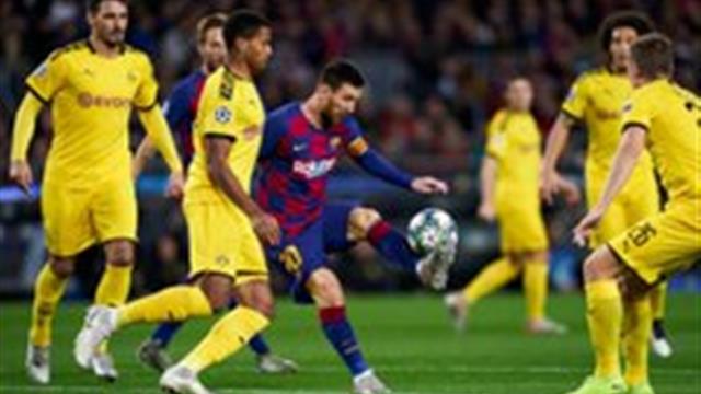 ويتقدم برشلونة بثلاثية أمام بوروسيا دورتموند سجلها لويس سواريز وليونيل ميسي وأنطوان جريزمان في الدقائق "28 و33 و67".