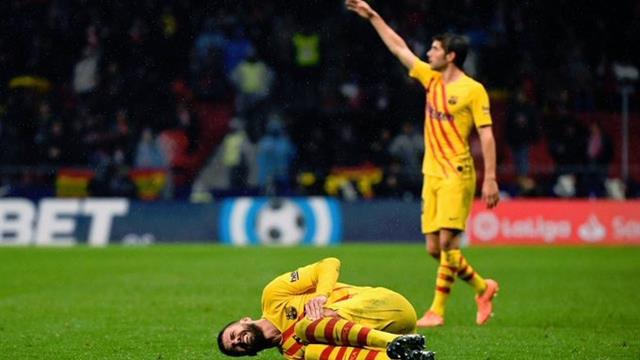بيكيه يتعرض للإصابة في مباراة برشلونة وأتلتيكو مدريد