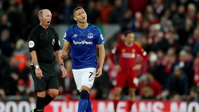 أحرز ريتشارليسون، هدفًا ثانيًا لفريقه إيفرتون أمام ليفربول، في الدقيقة الثانية من الوقت المحتسب بدلاً من الضائع للشوط الأول.