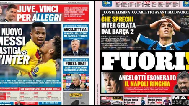 علقت الصحافة الإيطالية الصادرة صباح اليوم، الأربعاء، على إقصاء نادي إنتر ميلان على يد برشلونة من بطولة دوري أبطال أوروبا بعد الخسارة على ملعبه "جوسيبي مياتزا" بهدف مقابل هدفين.