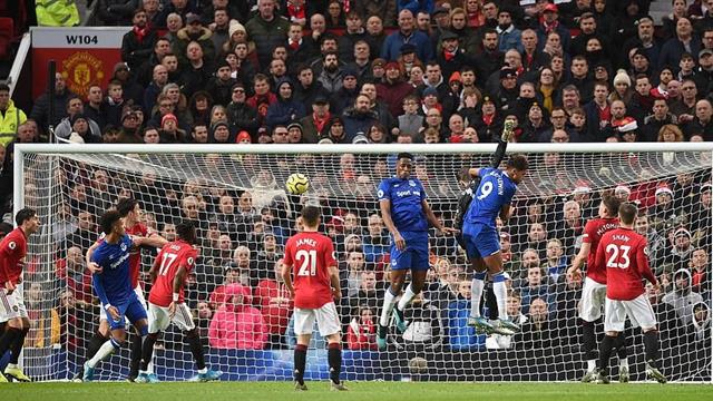 وجاء الهدف في شباك الشياطين الحمُر، في الدقيقة 36، بعد عرضية من لاعب إيفرتون، حاول ديفيد دي خيا التصدي للكرة، لكنها ارتدت بعد تدخل من كالفيرت ليوين لترتطم في المدافع السويدي فيتكور لينديلوف، وتدخل المرمى.