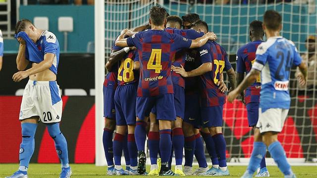 وصعد برشلونة لتلك المرحلة من خلال تصدره جدول ترتيب المجموعة السادسة بينما احتل نابولي المركز الثاني في المجموعة الخامسة.