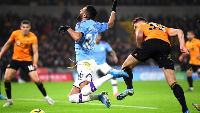 واحتسب حكم المباراة ركلة جزاء لصالح مانشستر سيتي بعد تدخل لاعب وولفرهامبتون لياندر ديندونكر ضد رياض محرز.