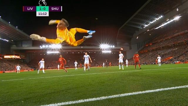 بالفيديو | حارس شيفيلد يتحول إلى سوبر مان أمام محمد صلاح ويحرمه من تسجيل هدفين رائعين