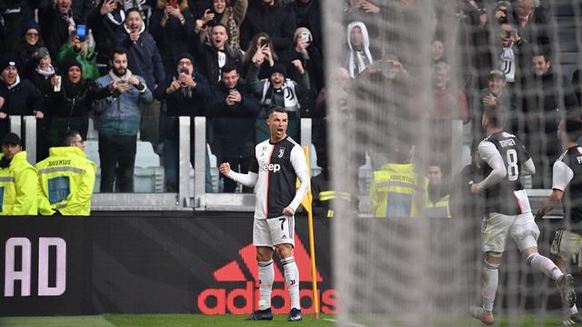 وتقدم رونالدو لأصحاب الأرض بعدما ضغط على مدافع كالياري ومر من الحارس وسجل في الدقيقة 49، قبل أن يحصل البيانكونيري على ركلة جزاء لصالح ديبالا سجلها الدون البرتغالي عند الدقيقة 67.