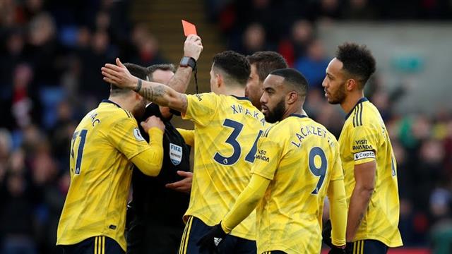 وحصل أوباميانج على بطاقة حمراء في الدقيقة 67 بعد تدخل العنيف ضد ماكس ماير.