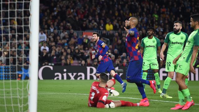 بالفيديو| ميسي يتألق وبرشلونة يحسم تأهله لربع نهائي كأس الملك بخماسية في ليجانيس