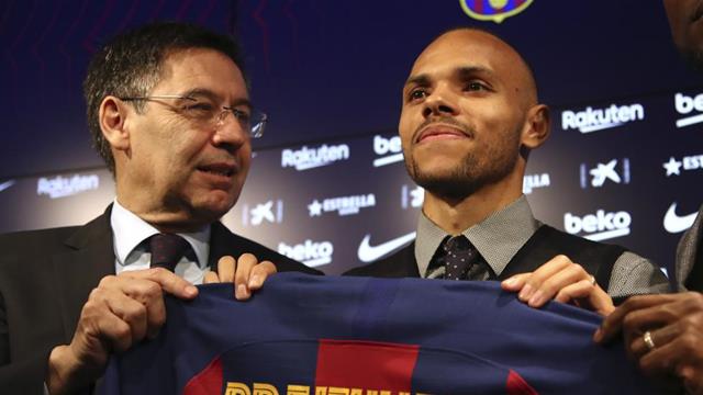 أعرب جوزيب ماريا بارتوميو، رئيس نادي برشلونة الإسباني عن حماسه بالتعاقد مع مارتين برايثوايت، مهاجم الفريق الجديد، خلال مؤتمر صحفي خاص بتقديم اللاعب.