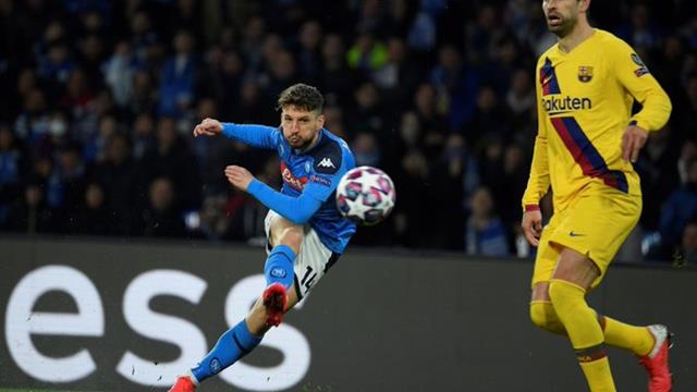 تقدم دريس ميرتنز بالهدف الأول لفريقه نابولي، أمام برشلونة في دوري أبطال أوروبا.