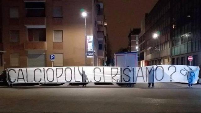 ورفع ألتراس إنتر ميلان لافتة كبيرة أمام مقر ليجا سيريا هذا المساء تحمل عبارة: "كالتشيو بولي، هل يحدث ذلك مرة أخرى؟".