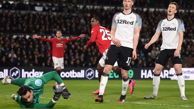 دخل الدولي النيجيري أوديون إيجالو، مُهاجم فريق مانشستر يونايتد، تاريخ مُسابقة كأس الاتحاد الإنجليزي، بعد هدفيه في مرمى في ديربي كاونتي.