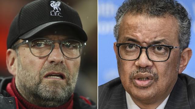 وجه الأثيوبي تيدروس أدهانوم جيبريسوس المدير العام لمُنظمة الصحة العالمية، الشكر للمدرب الألماني يورجن كلوب المدير الفني لليفربول الإنجليزي، بعد تصريحاته عن فيروس كورونا المُستجد "كوفيد 19"، عقب قرار إيقاف مسابقة الدوري الإنجليزي الممتاز.