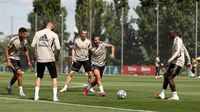 شارك الدولي البلجيكي إيدين هازارد، جناح فريق ريال مدريد، في تدريبات النادي الملكي، اليوم الثلاثاء، استعدادًا لمواجهة فالنسيا في الدوري الإسباني.