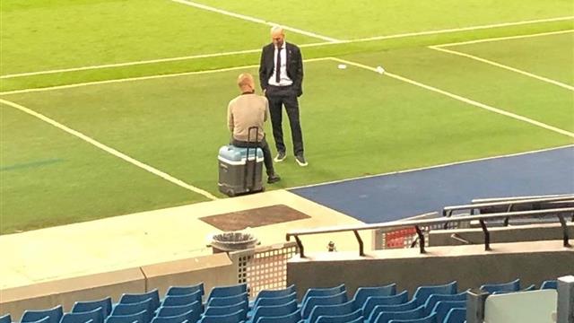 وعقب مباراة الأمس، التقطت الكاميرات لقاء بين جوارديولا وزيدان عند خط التماس، حيث تبادلا الحديث سويًا لفترة من الوقت.